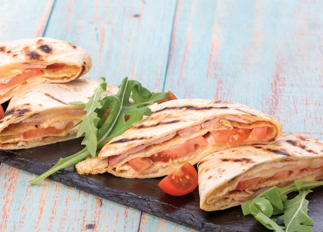 Tortillas de trigo de calidad rellenas de una masa preparada con queso , harina, leche y un poco de mantequilla, añadiendo posteriormente para su cocción conjunta bacon y champiñón Una vez se enfría la masa, se forman manualmente las faijtas. Se pueden calentar al microondas o dorar en el horno, a gusto del cliente final.